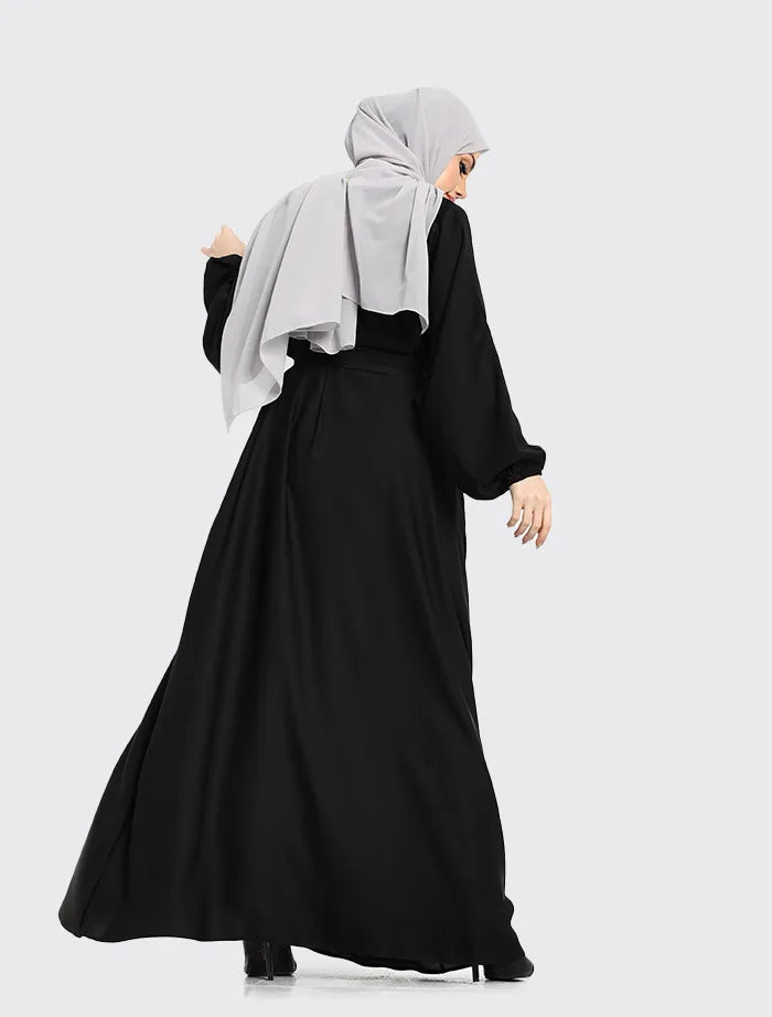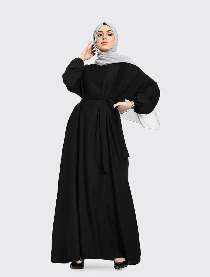 A wardrobe essential, this abaya combines understated elegance with all-day comfort. The A-line silhouette with a gently flared hem offers ease of movement, while side pockets add everyday practicality. Elasticated cuffs create a soft puffed detail, and the included detachable belt allows you to switch effortlessly between a defined, structured look or a laid-back, casual style.