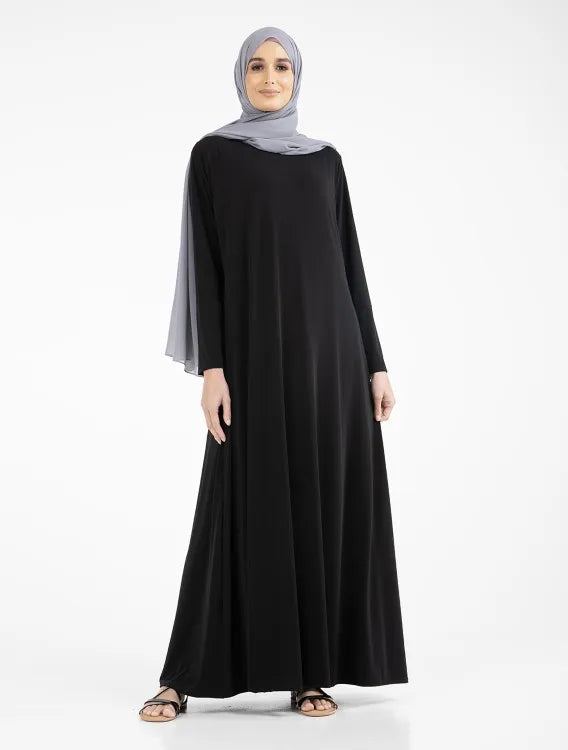 Elegantly crafted with a flattering A-line shape, this abaya is perfect for daily wear. It includes practical side pockets to keep your essentials close and stretchy cuffs for enhanced ease and comfort. A classic piece you'll reach for time and time again.