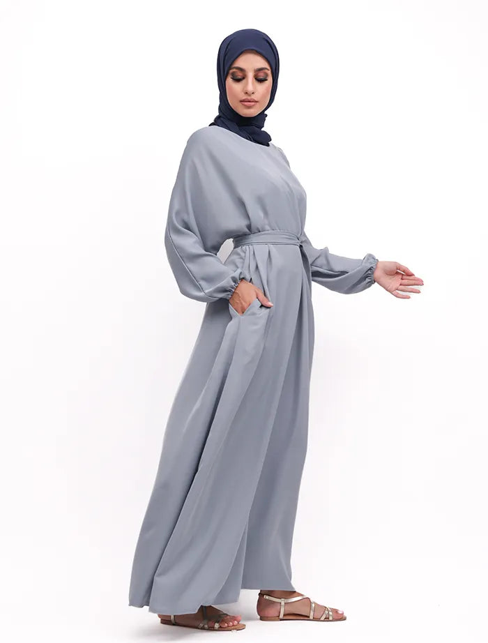 A go-to everyday abaya that combines understated style with comfort. It’s cut in an A-line silhouette with a gently flared hem and includes handy side pockets for your daily essentials. Elasticated cuffs add a soft, puffed touch to the sleeves, and a detachable belt lets you switch between a defined or laid-back look with ease.