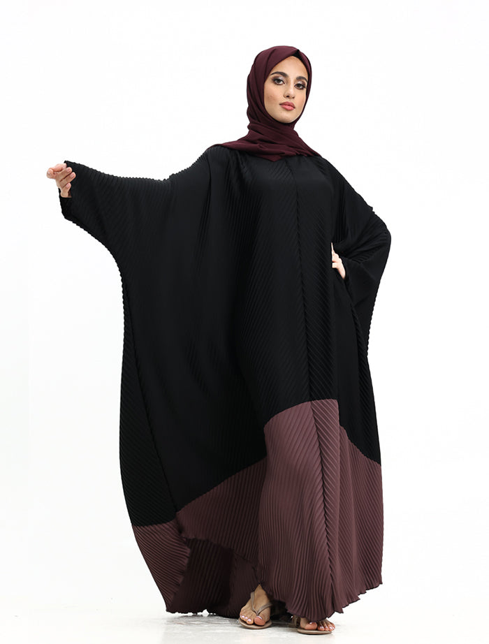 This batwing abaya is designed with a V-shaped neckline and a relaxed, loose fit for everyday comfort. It’s accented with subtle pleating, adding a touch of detail to its otherwise simple and modest style.