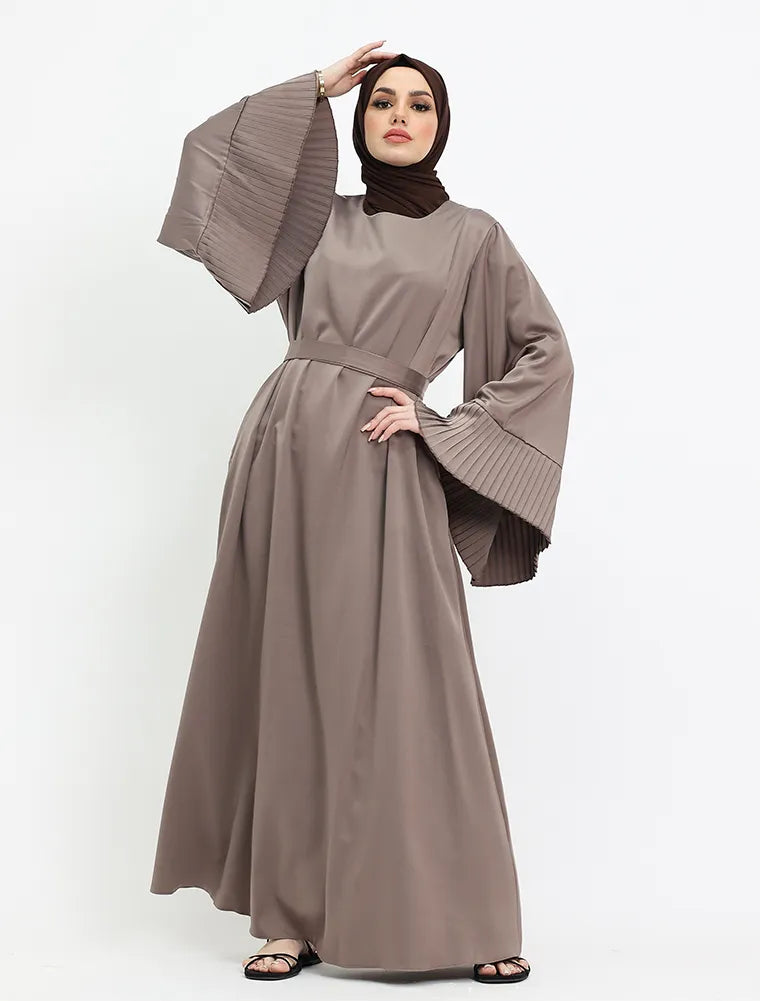Mocha Pleat Cuffs Satin Abaya
